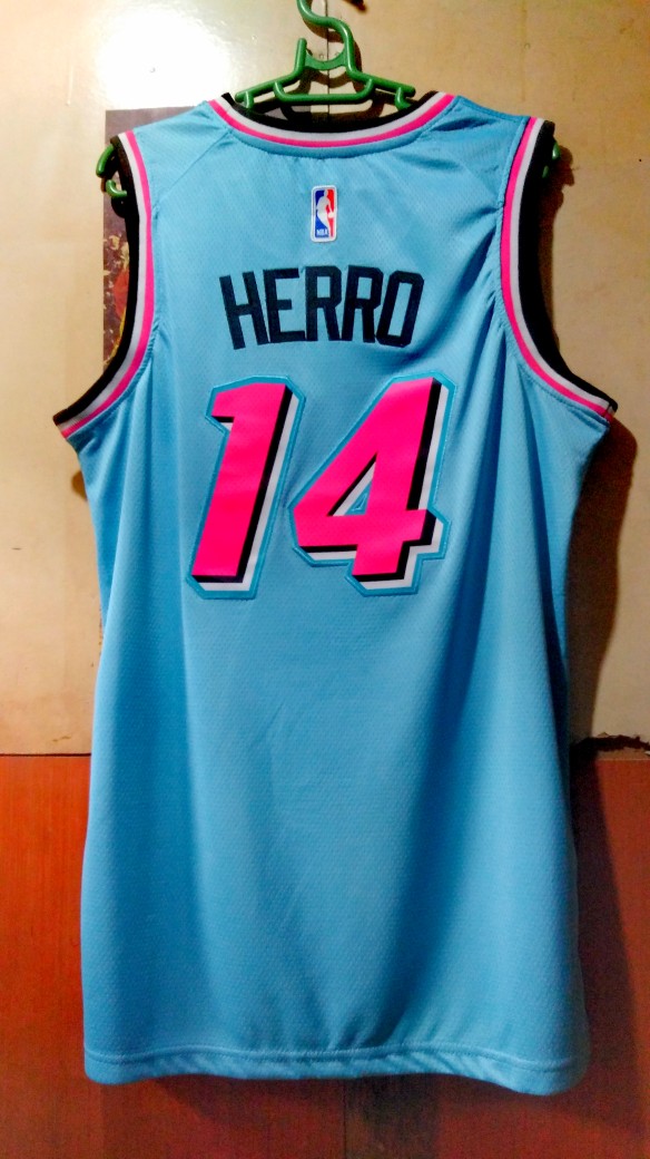 The rather innocent of the heat's locker after debuting the laser fuchsia sunset vice and the black vice nights city edition collections last year, the new jerseys are almost entirely blue gale miami heat jersey blue. Across his past eight appearances, herro has averaged 17.6 points, 3.3 assists and 3.1 rebounds in 31.3 minutes per game.